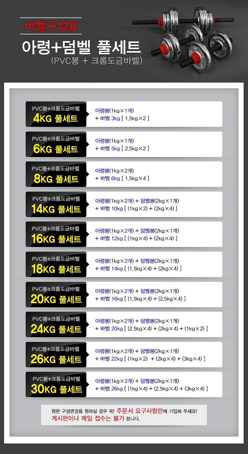 • 크롬도금바벨 4kg - 30kg 세트 선택가능